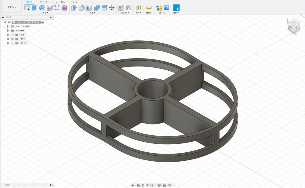 で、ローターの半径を5mm足した線も追加して、後は適当に押し出しを使って生成。